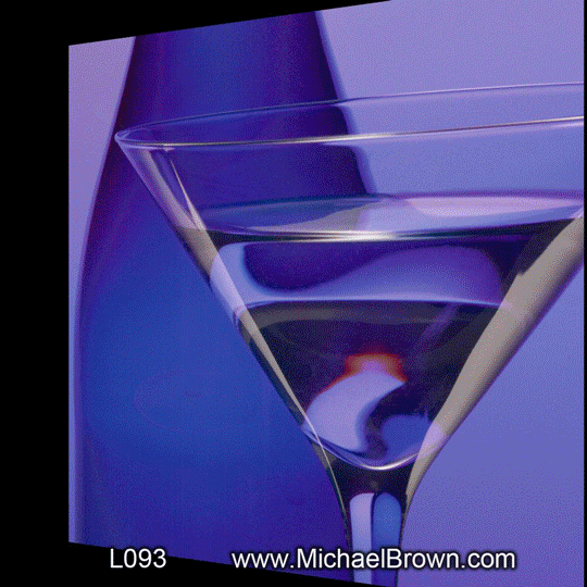 Are you a martini person? Do you like color and glass? This composition magically changes from one glass to three. These glasses were shot in the studio, they were completely clear glasses (although the bottle was blue), and lit with colored lights.