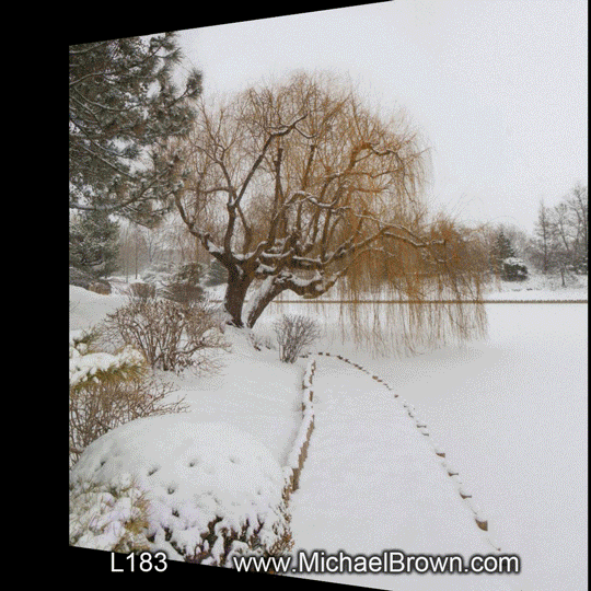 Serene and meditative, this garden will mesmerize the viewer with its changing seasons. Leaves fall, snow covers the landscape.