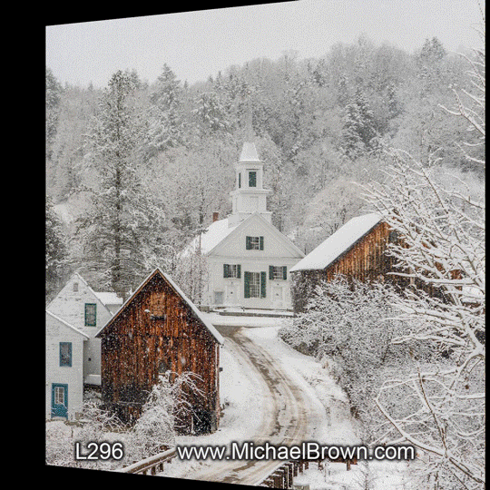 When I think of Vermont landscapes I imagine beautiful fall colors from the sugar maples and small town country stores and churches. This composition is from the center of the state. I was able to visit in autumn and then returned a few months later after a fresh winter snow.